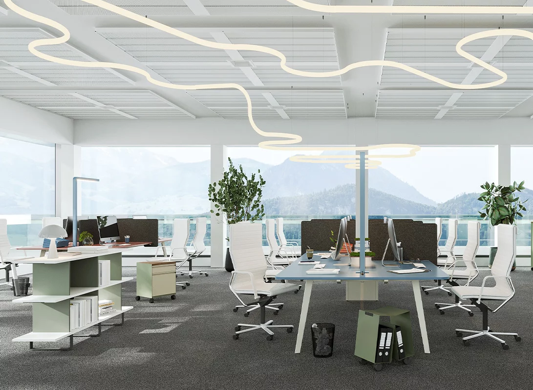Das Raumteil- und Regalsystem für maximale Wandlungsfähigkeit in der Büroeinrichtung.