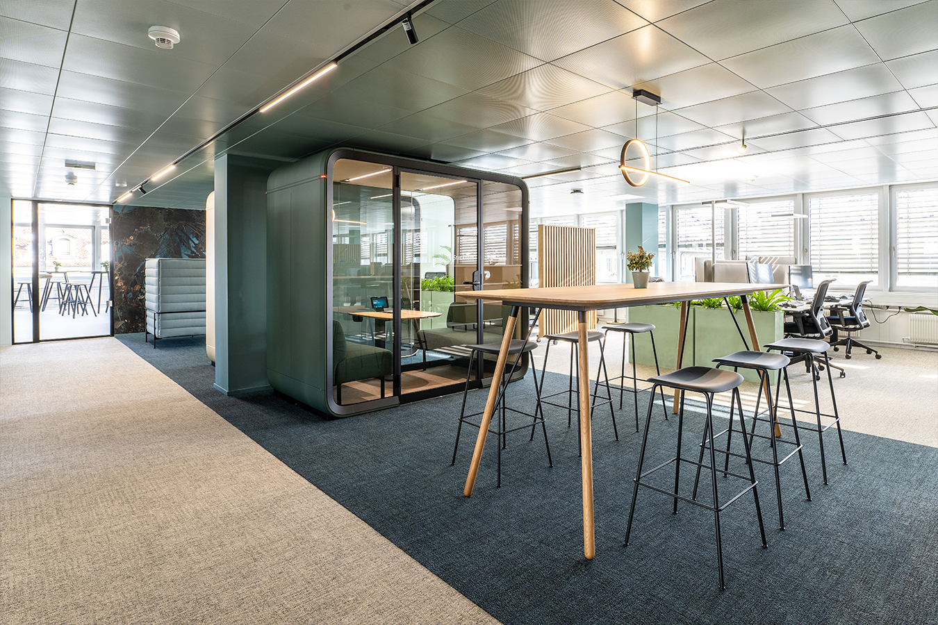 Mitten in der Stadt Bern hat die Berner Geschäftsstelle der IT-Dienstleisterin adesso Schweiz AG ihren Sitz. Der Bubenbergplatz 8 ist ein attraktiver Standort unweit des Hauptbahnhofs. Dieser Traumlage würdig zeigt sich das neue Bürokonzept im Stil von «New Work»: Offene Büroräumlichkeiten und freundliche Meetingzonen fördern den Austausch und die Kollaboration im Team. Kleine Sitzungszimmer und neu integrierte Rückzugsmöglichkeiten wie die schalldichten «Framery Boxen» hingegen sorgen für die gewünschte Privatsphäre. Auch professionelle Arbeitsmaterialien wie Glasboards und Pinnwände sowie funktionale höhenverstellbare Arbeitstische unterstreichen den New-Work-Standard. «Wir begrüssen Homeoffice», sagt Deputy CEO Michaela Gasser. «Dennoch soll das neue Konzept die Mitarbeitenden dazu einladen, gerne und vermehrt ins Büro zu kommen.»