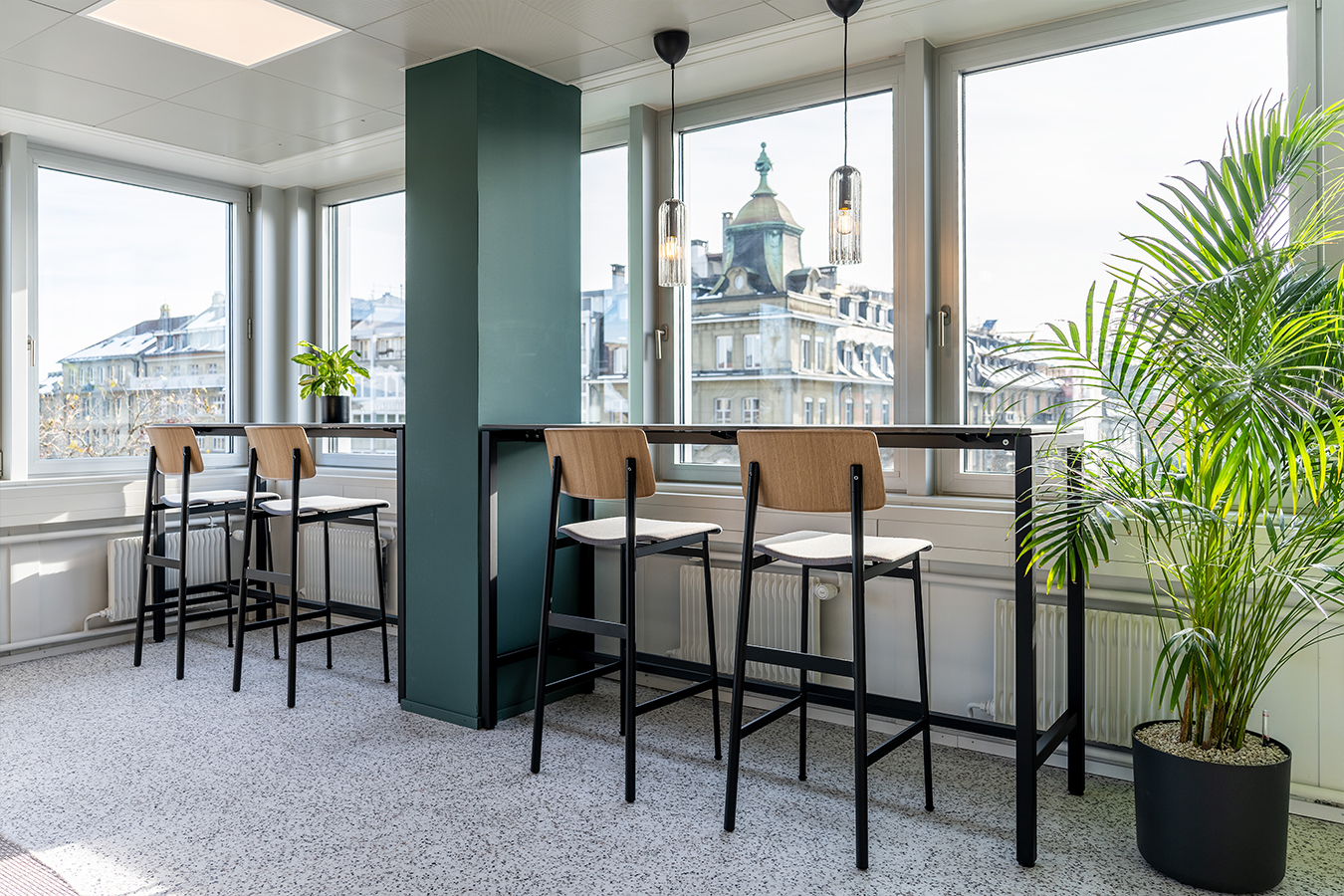 - Freundliche Meetingzonen und grosszügige Aufenthaltsbereiche fördern den Austausch