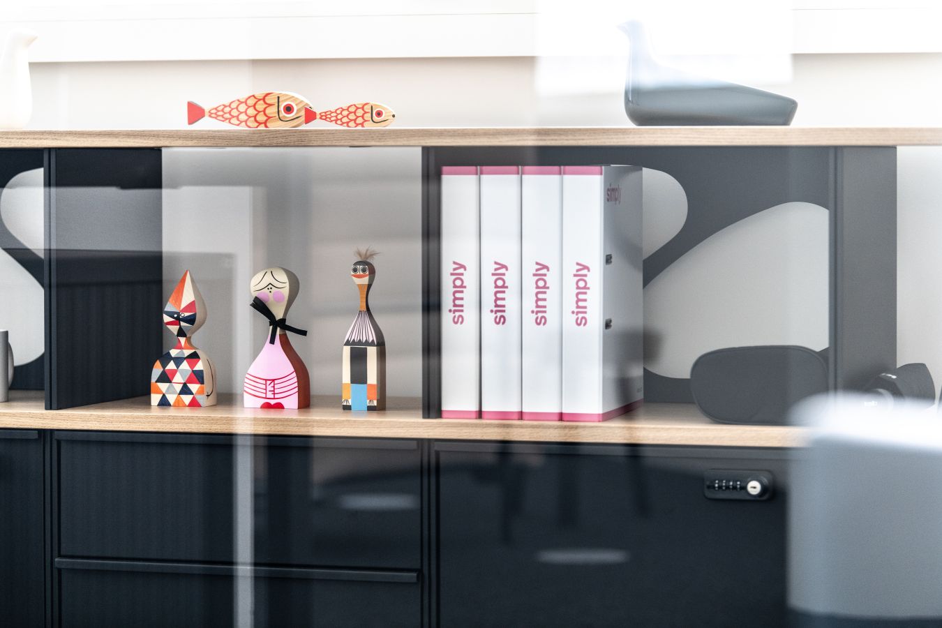 Nach einem Standortwechsel hat sich die Versicherungsberaterin Simply Services AG für ein dezentes Bürokonzept entschieden. Die hochwertige Einrichtung drückt die Wertschätzung des Unternehmens gegenüber den Mitarbeitenden aus. Die sorgfältige Auswahl von Farben und Materialien steigert das Wohlbefinden zusätzlich.