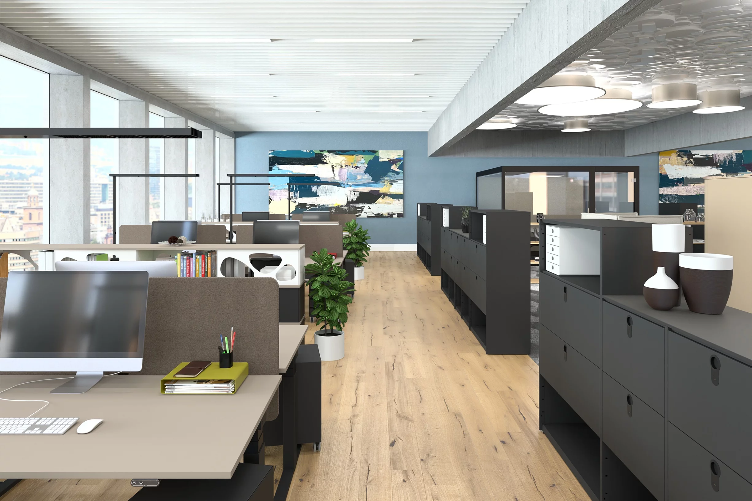 Das Raumteil- und Regalsystem für maximale Wandlungsfähigkeit in der Büroeinrichtung.