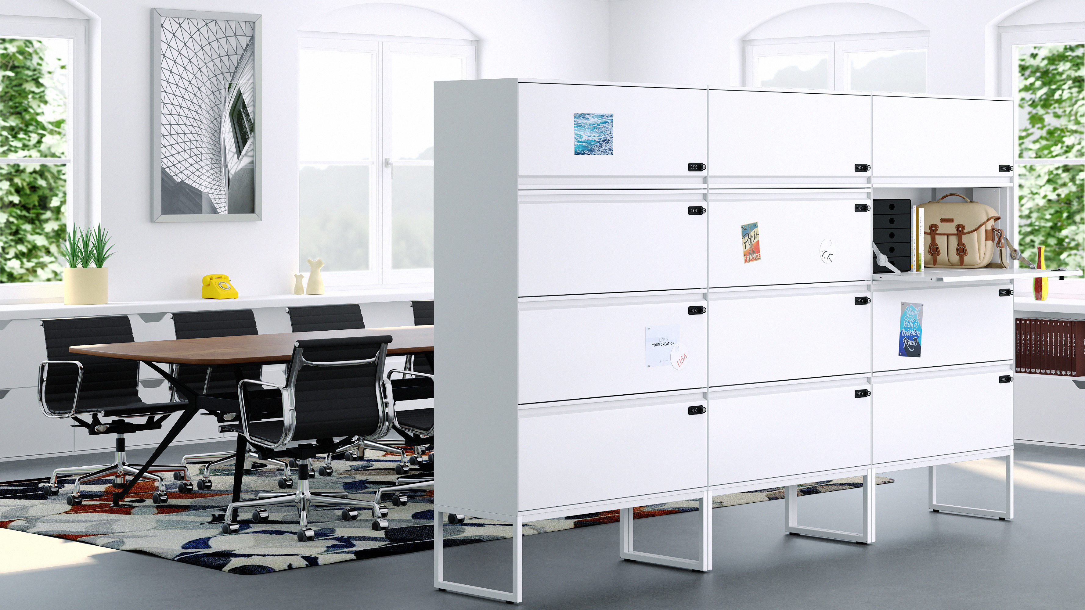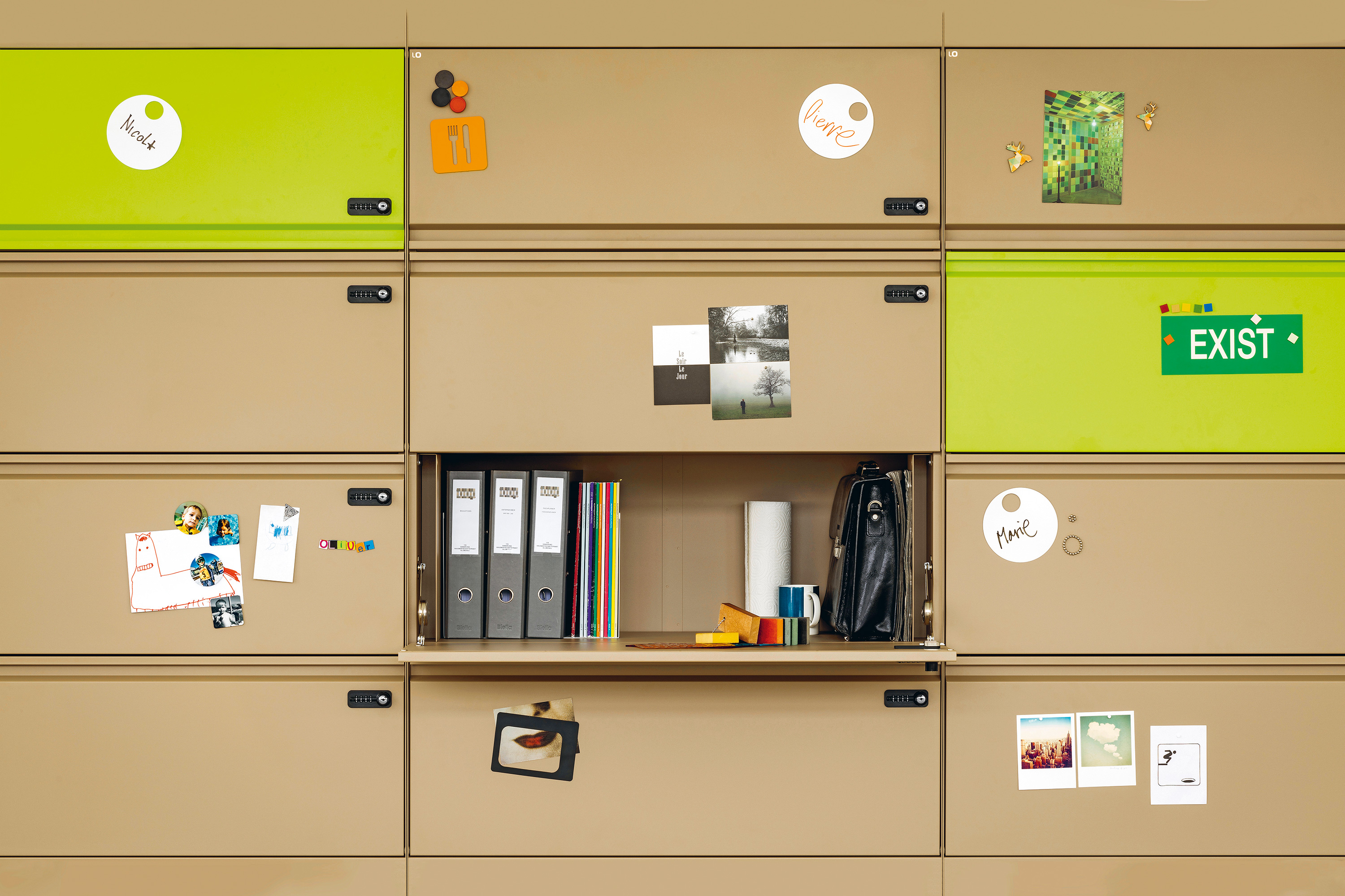 Organisationselemente und die Oberfläche als magnetische Pinnwand erweitern die Möglichkeiten mit LO Locker.