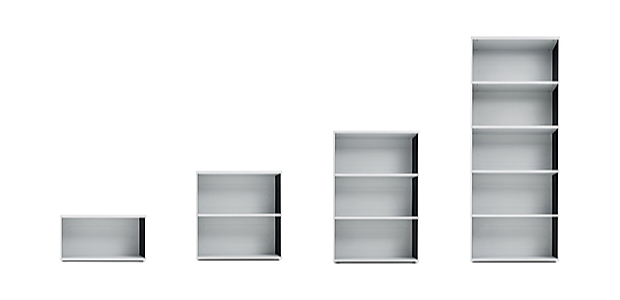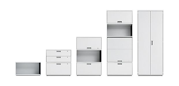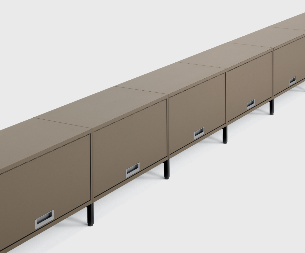 Zeitloses, reduziertes und funktionales Design und unendlich verkettbar. Diese Module, die mit Fronten nach individuellem Bedarf ausgestattet werden, lassen sich auf verschiedenste Arten kombinieren.