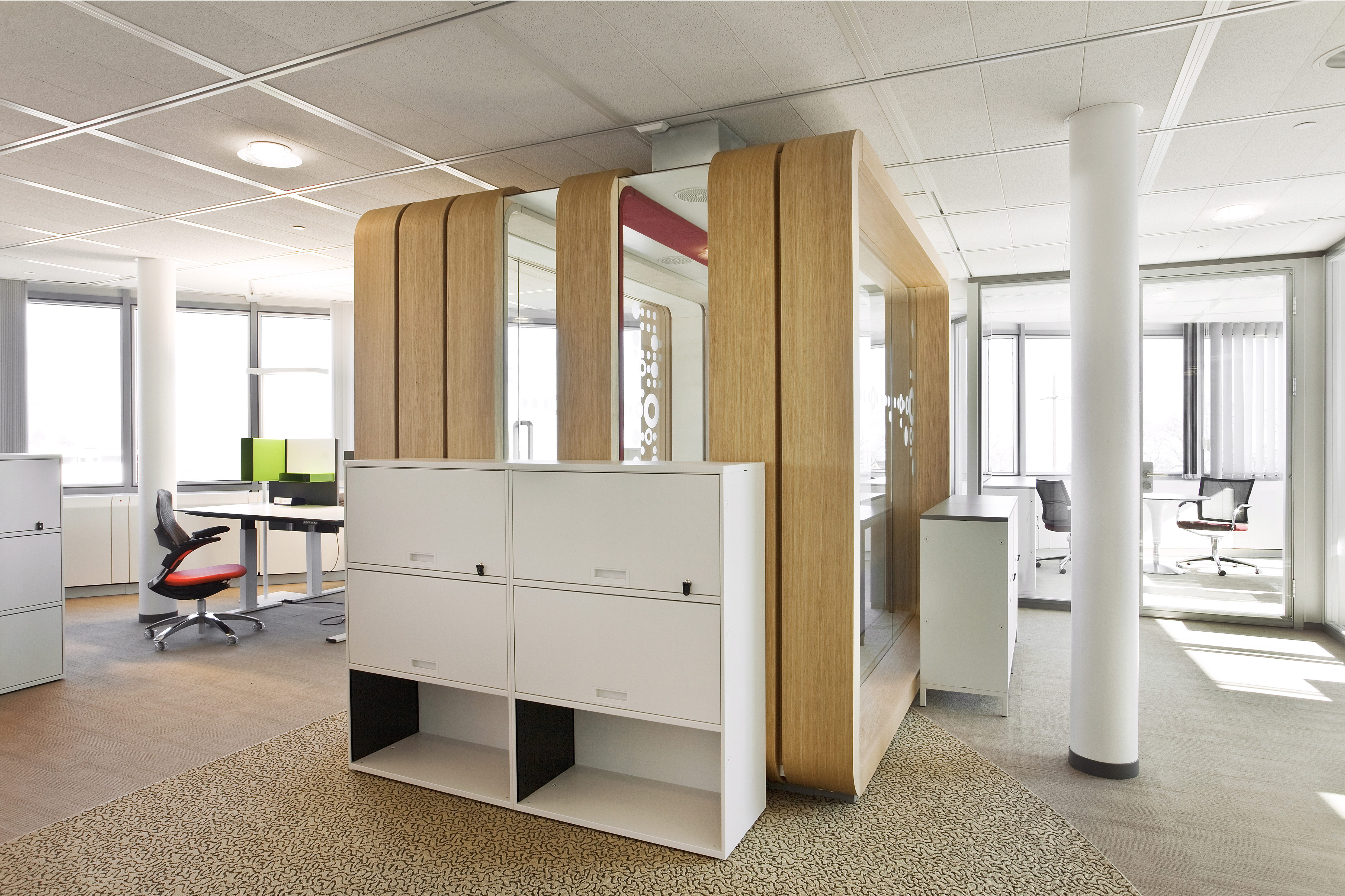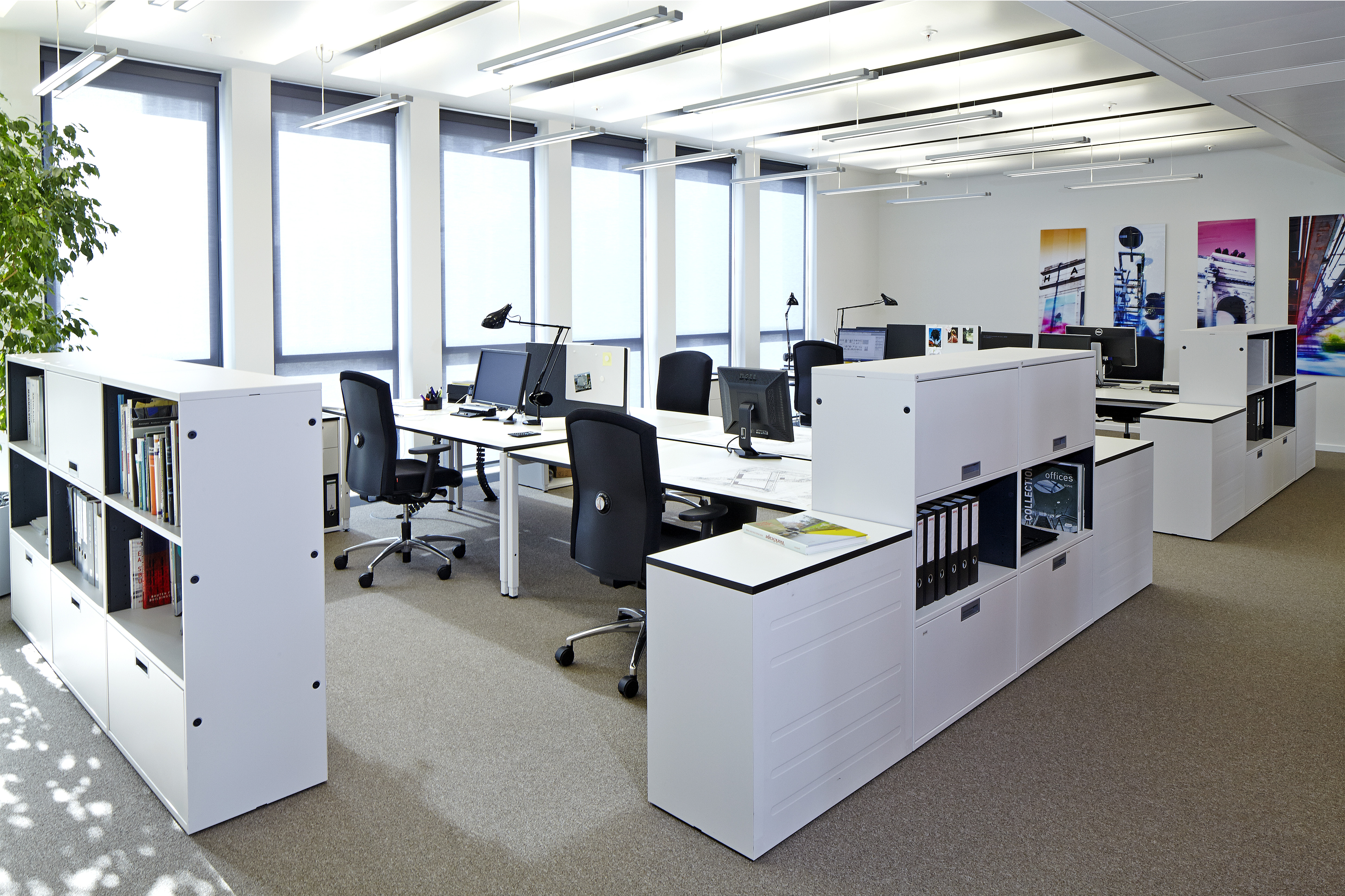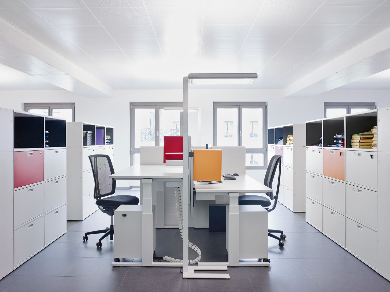 Die akustische Ausführung absorbiert Geräusche und sorgt für ein angenehmeres Arbeitsklima.