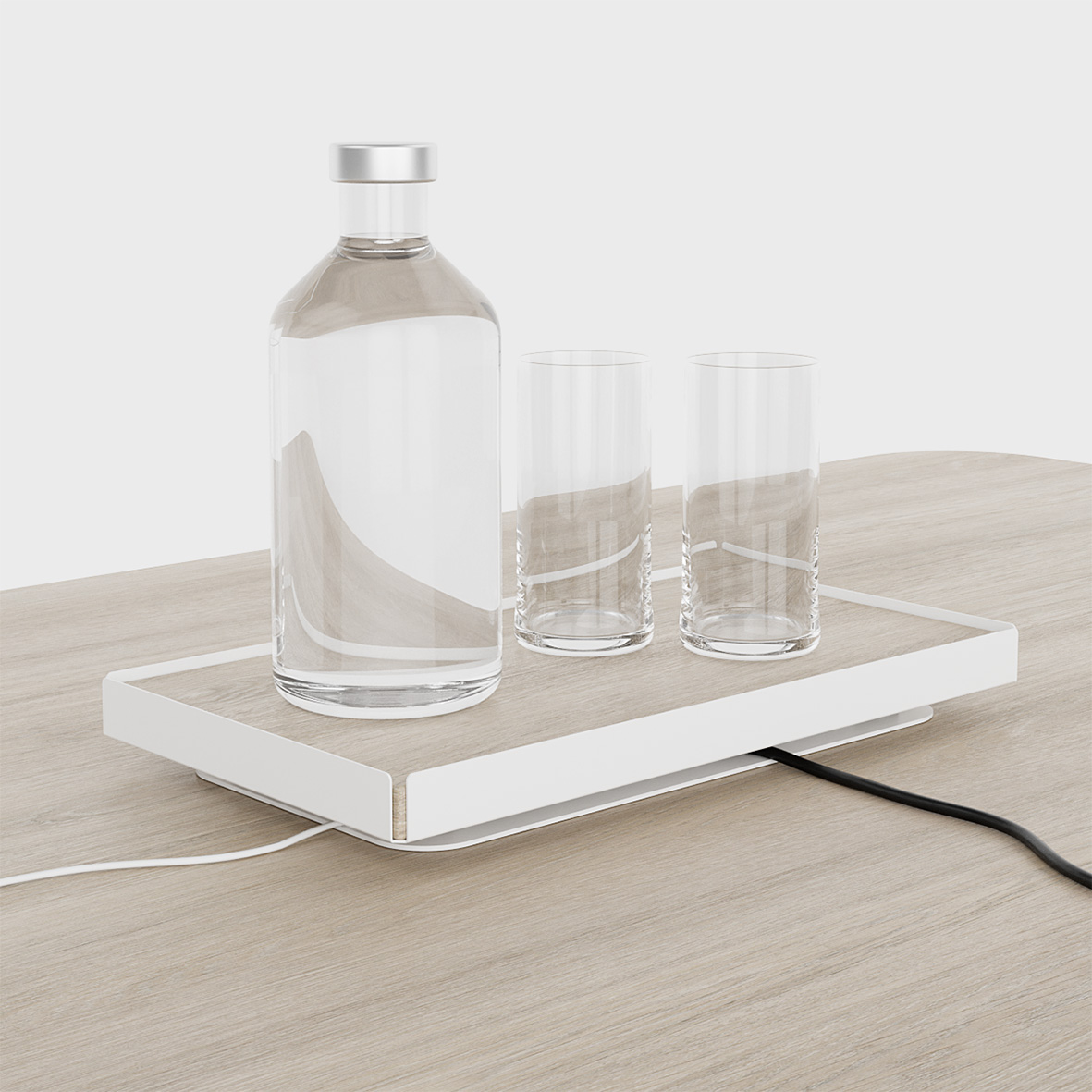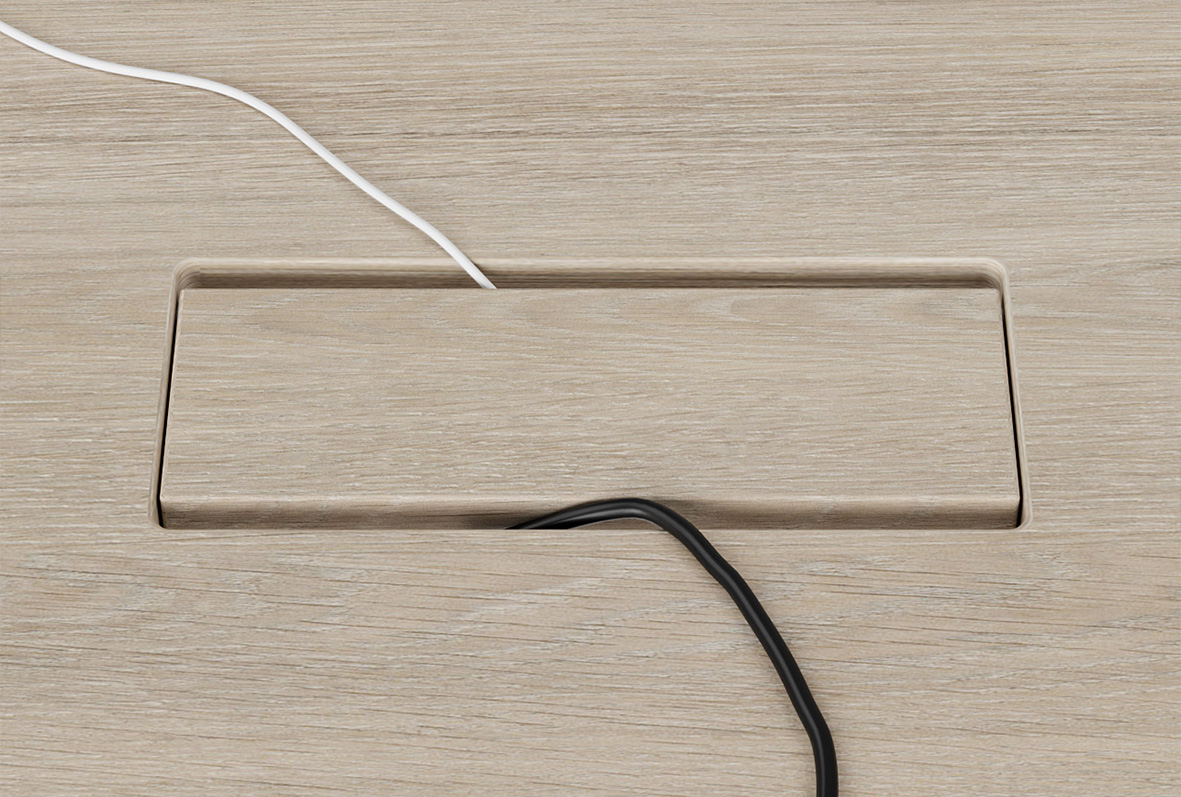 Eingelassene Elektrowanne für die Stromversorgung mit einer praktischen Ablage für eine elegante Abdeckung.