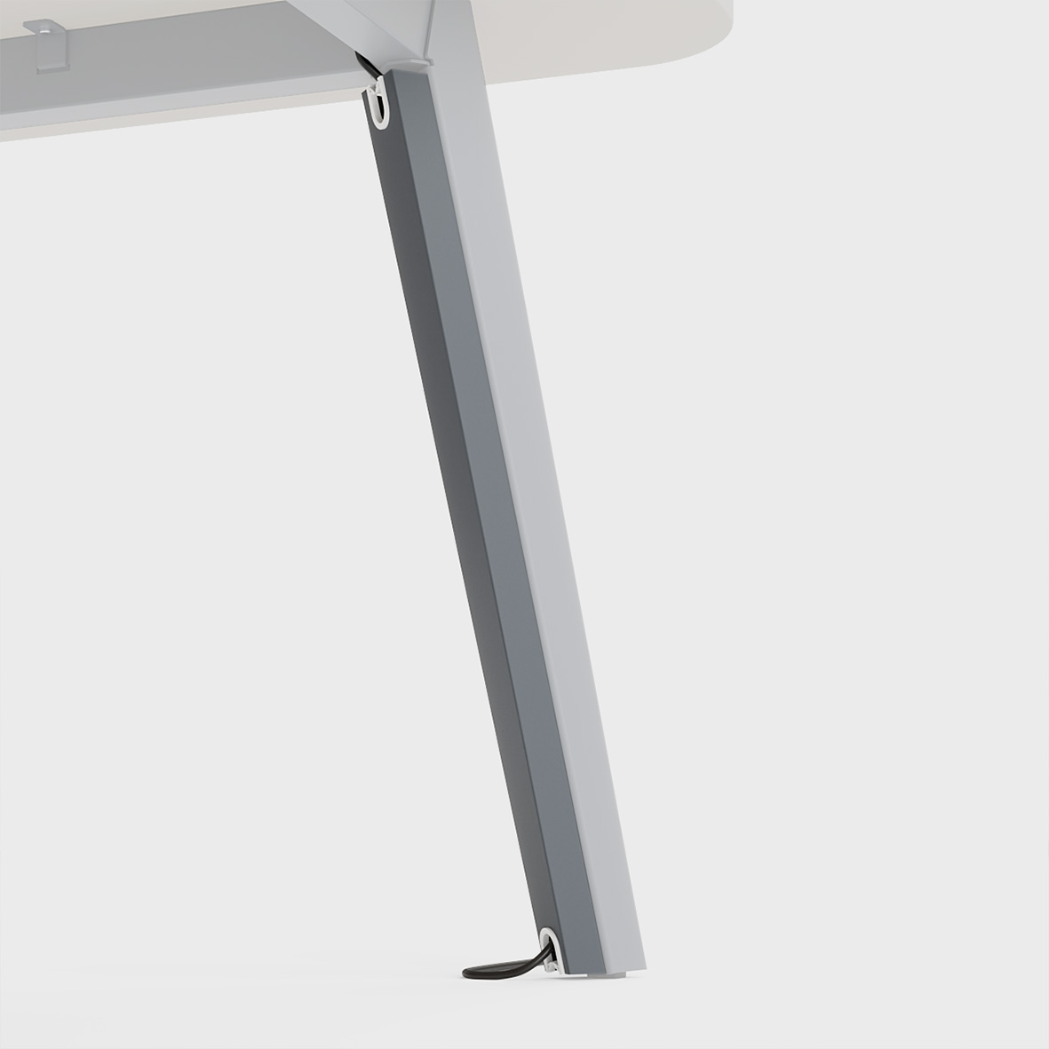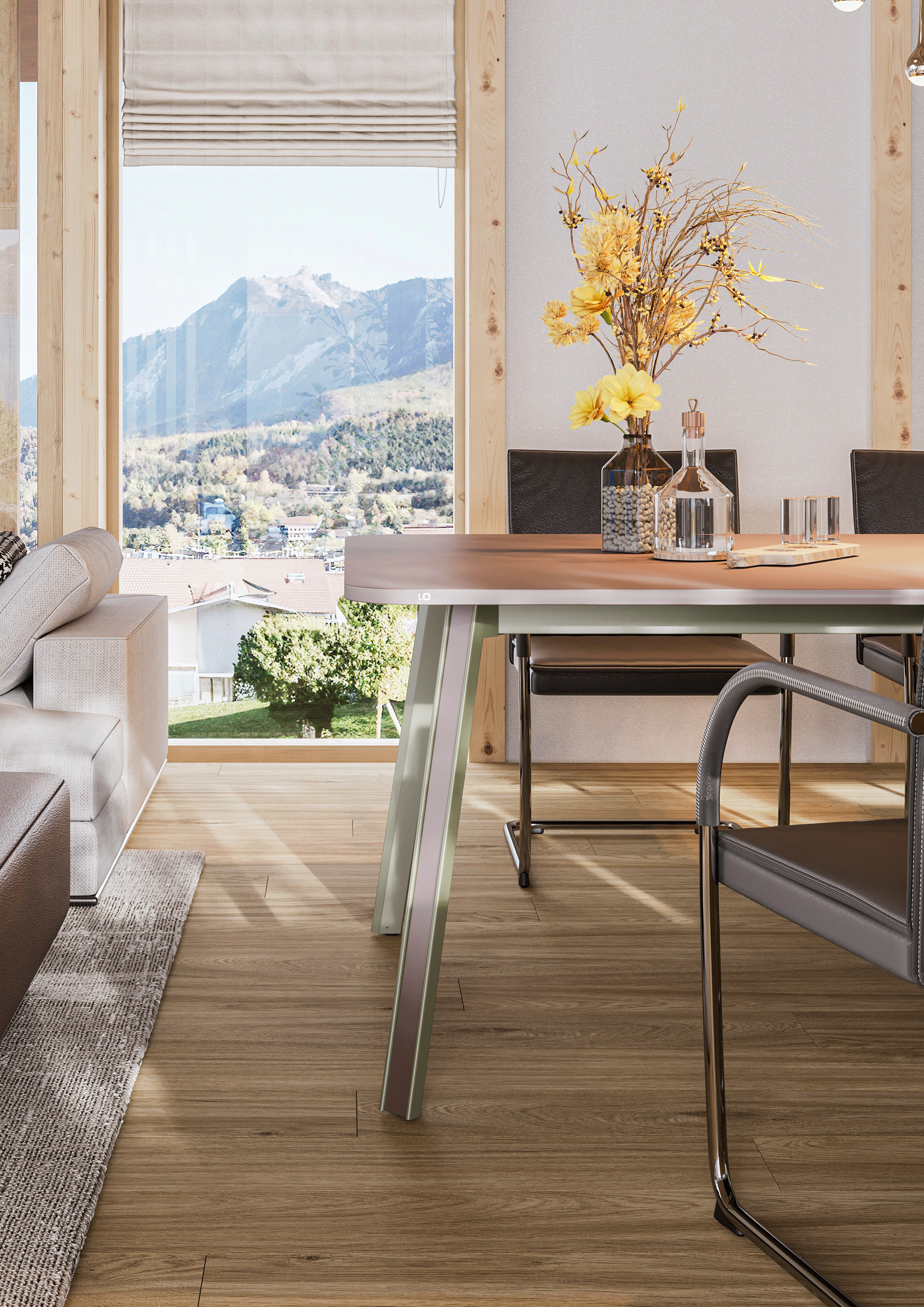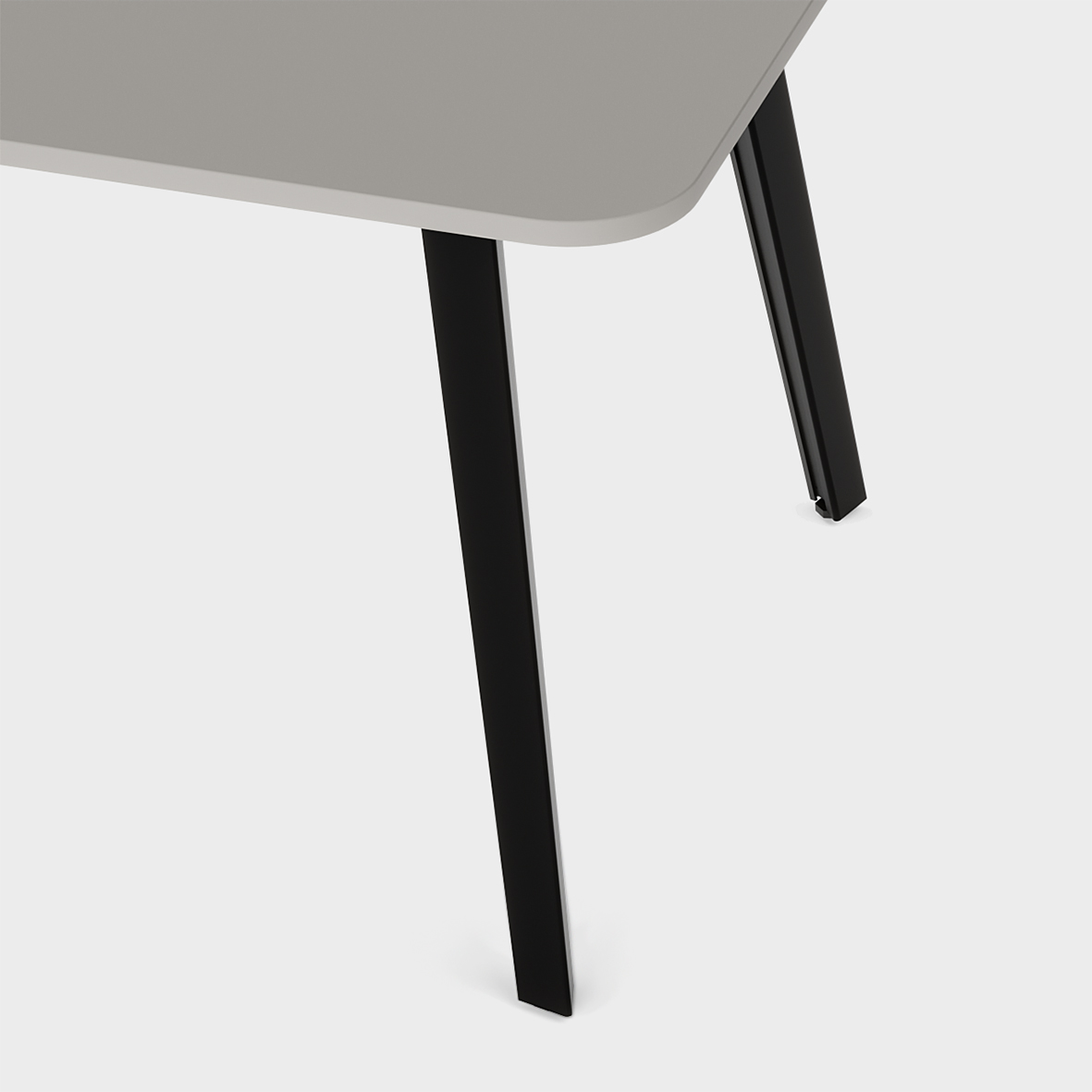 Nahtlose Harmonie durch den Tischfuss mit Inlay in der Tischplattenfarbe.
