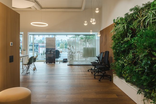 Der Showroom von Lista Office LO in Fribourg ist nicht länger nüchterner Ausstellungsraum. Holz, Beton und Pflanzen holen zusammen mit Einrichtungselementen in Form von Wolken oder eines Blitzes die Natur direkt ins Büro. Das Resultat zeigt ein harmonisches Gesamtkonzept, in dem Farben, Licht, Materialien, Pflanzen und Möbel miteinander spielen.