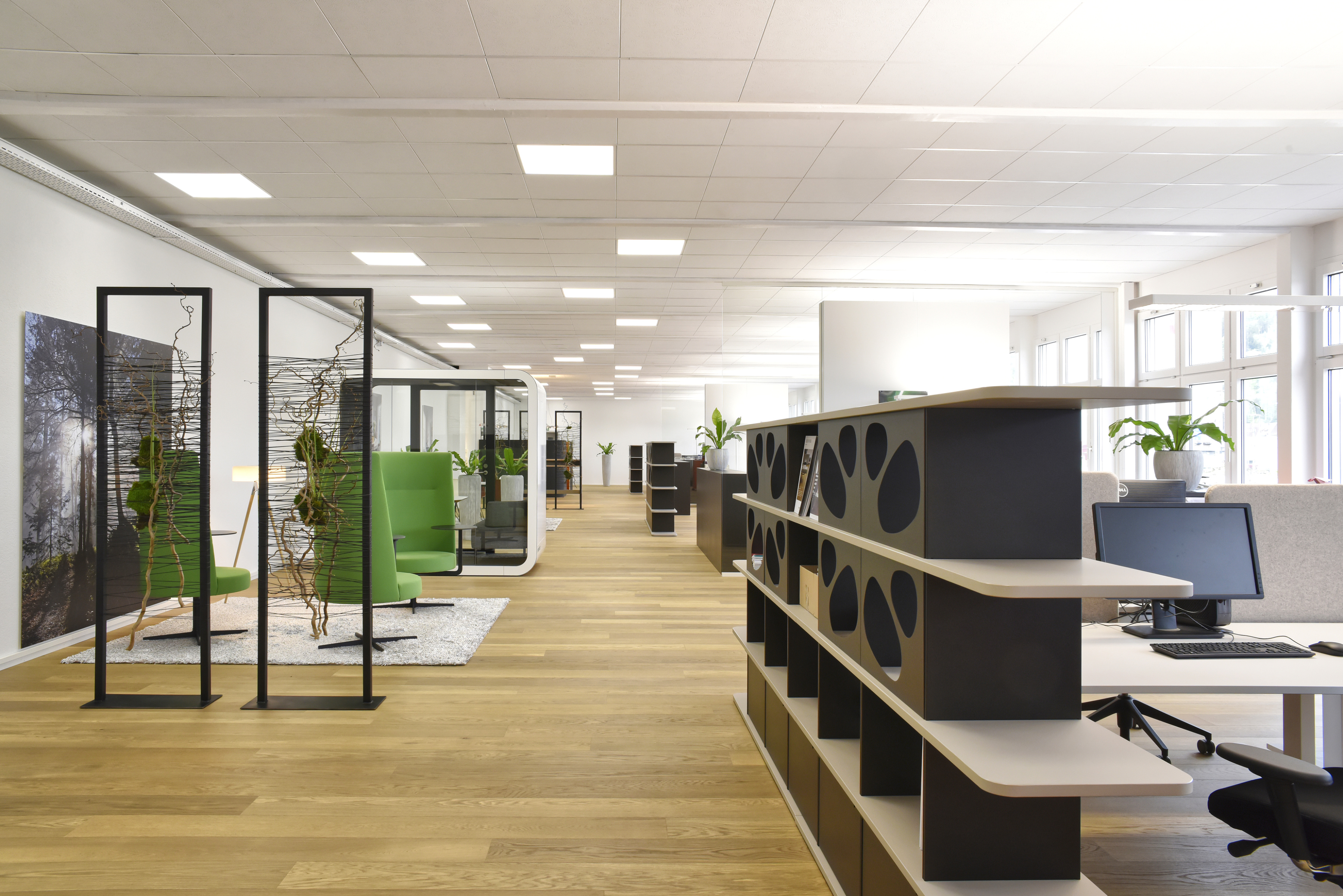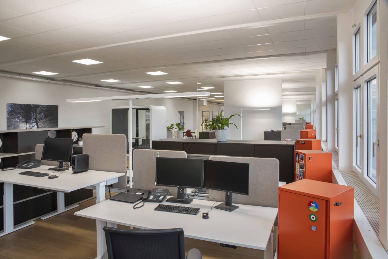 In einem Erneuerungsprozess überwindet das Schweizer Traditionsunternehmen die über Jahrzehnte bestehende Organisationsform von Einzelbüros spielerisch. Der entstandene offene Raum in Verbindung mit der Flexibilität des intelligenten Mobiliars von Lista Office LO intensiviert den Austausch zwischen den Mitarbeitenden bei gleichzeitiger Wahrung von Rückzugsmöglichkeiten, die zu Zweiergesprächen und zur Arbeit in kleinen Teams einlädt. Die veränderte Kommunikation wirkt sich positiv-disruptiv auf alle hierarchischen Ebenen aus – bis hin zum CEO, dessen Büro neu gleichzeitig als grösster Sitzungsraum dient.