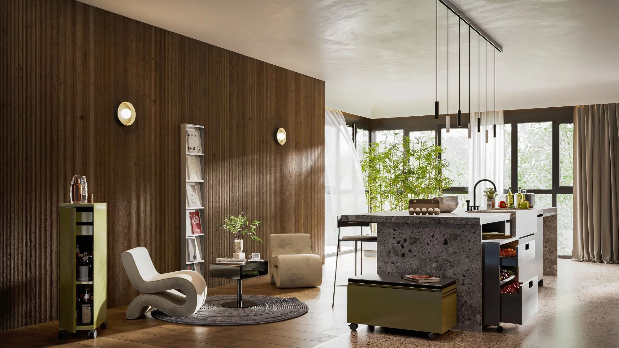 Das Ablagesystem für Ordnung unter und neben dem Tisch.