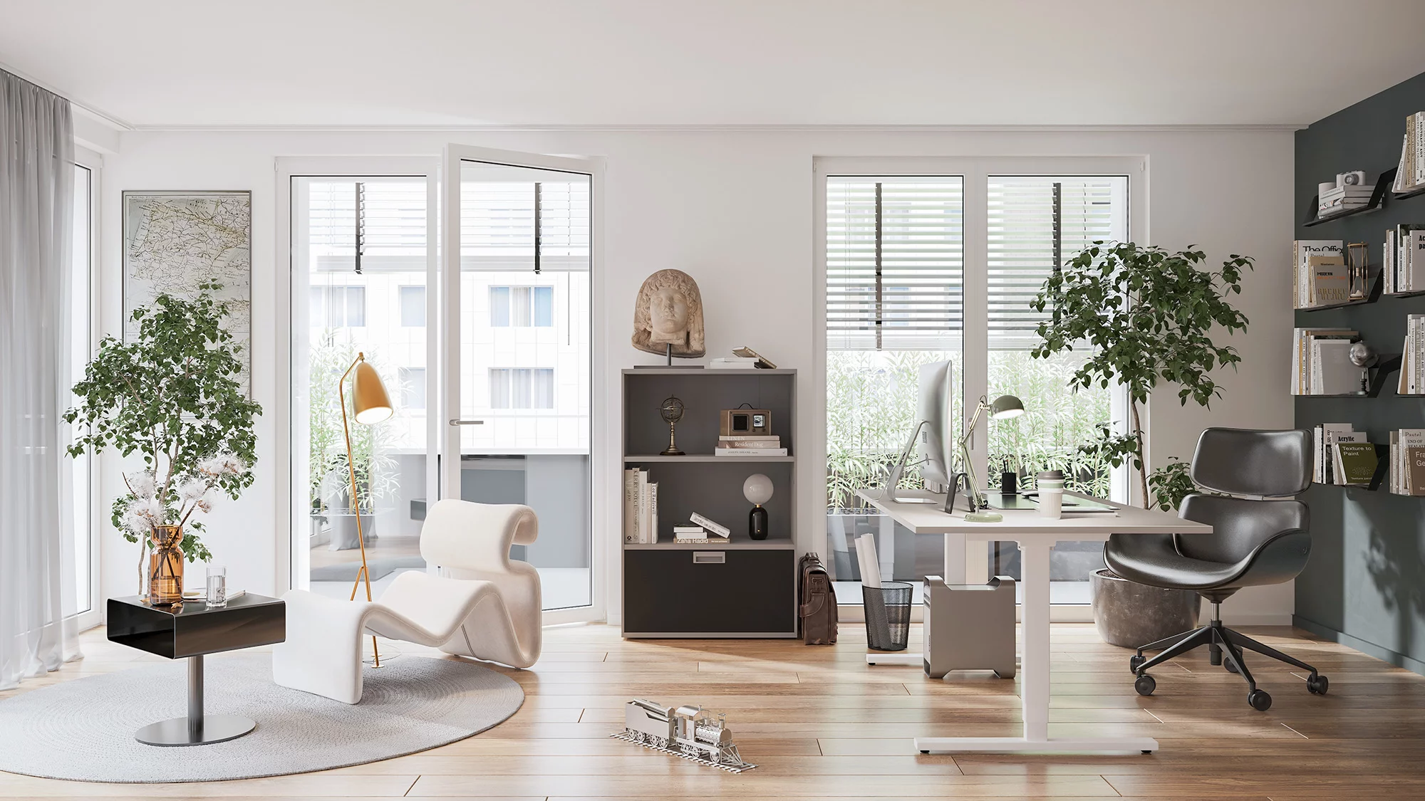 Der Sitz-/Steh-Arbeitstisch in seiner reinsten Form.