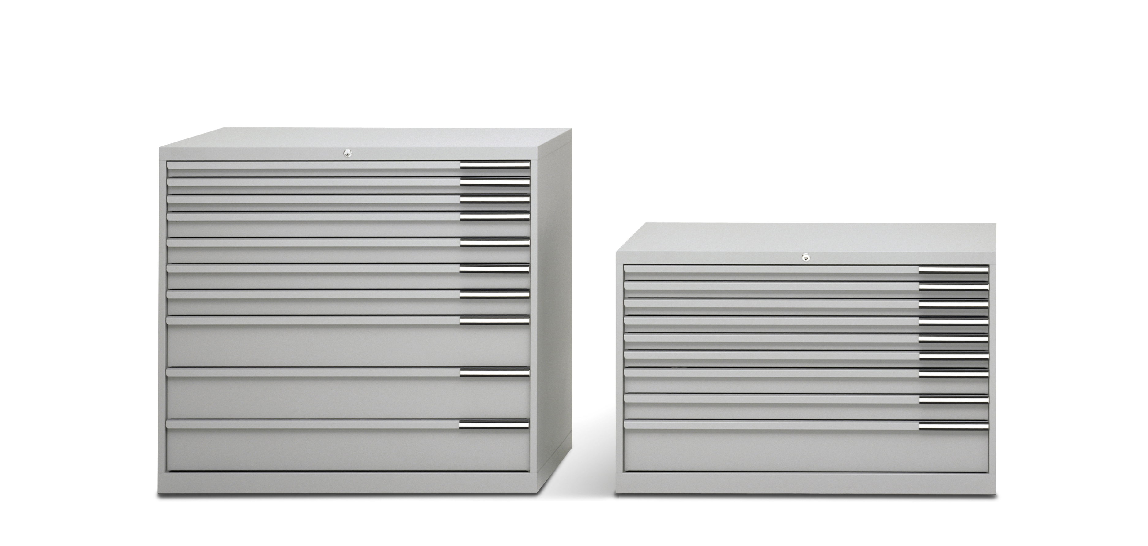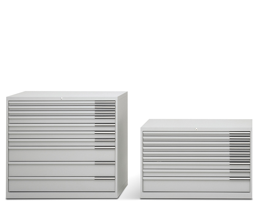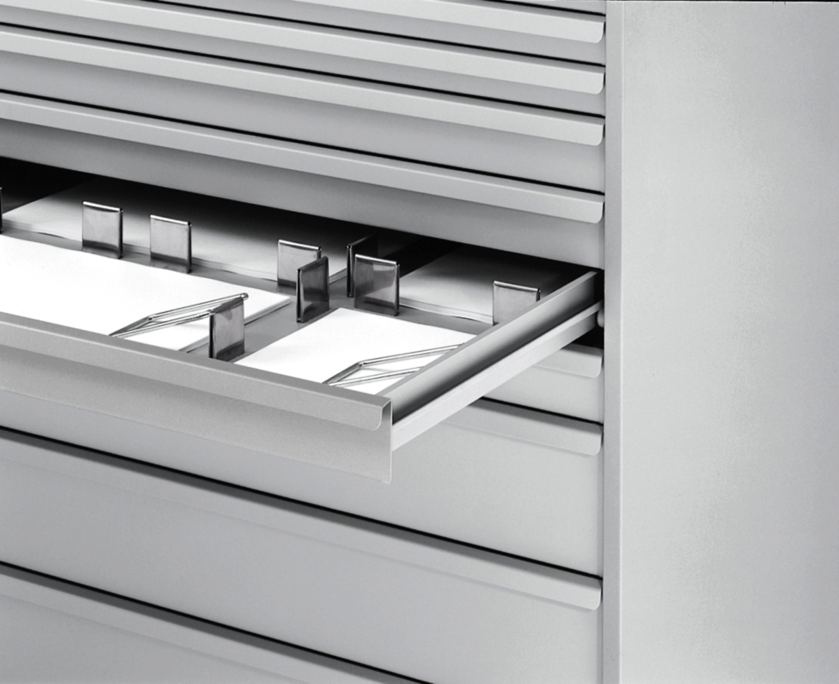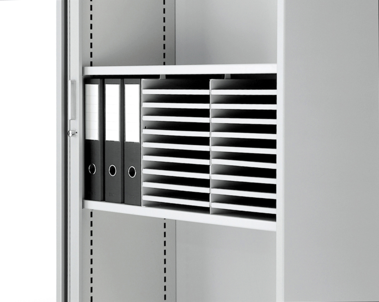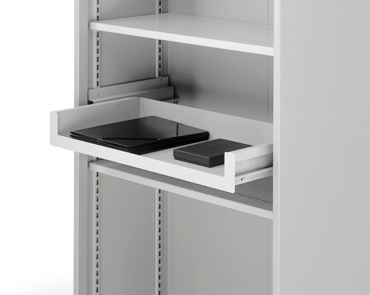 Sliding tray for finely dividing the high storage units.